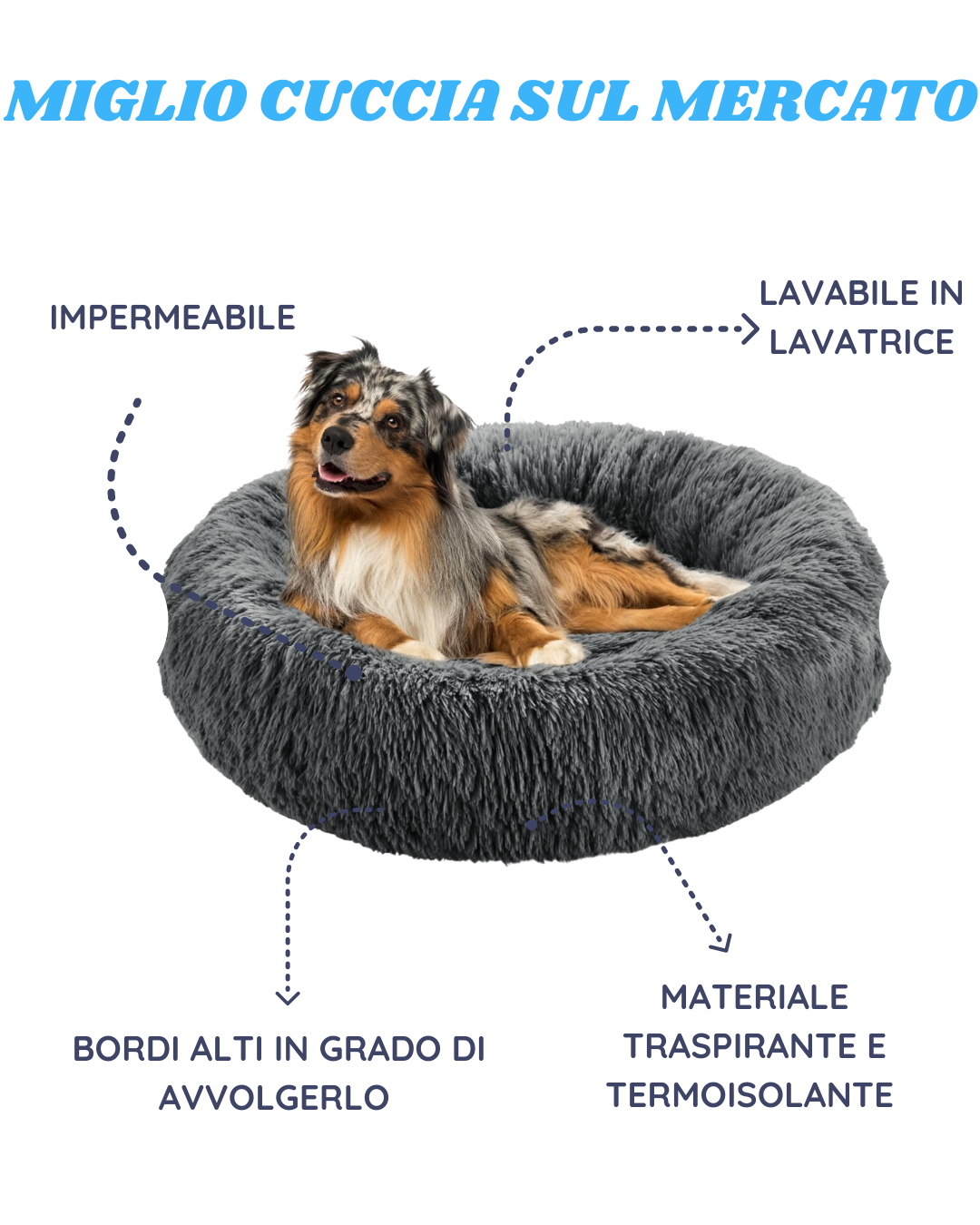 La cuccia è imbottita anche per evitare dolori articolari e ideata per trattenere il pelo per non ritorvarselo sparso in casa!